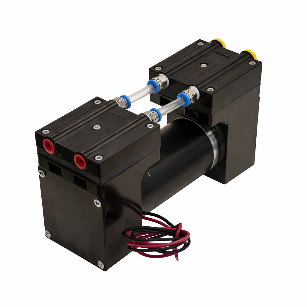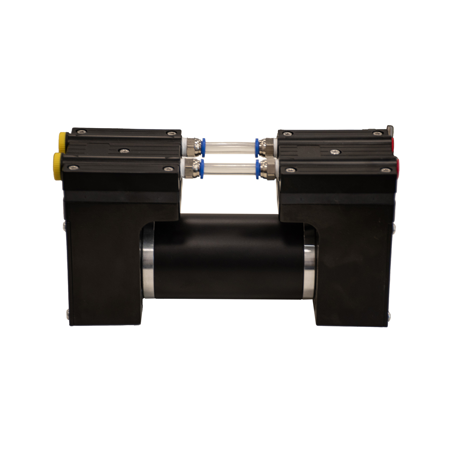 Bomba de vacío a diafragma de 2 cabezales para equipos de ventosas para grúas con sistema de vacío a batería y de 6 sopapas o más.