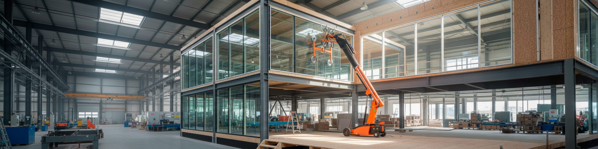 El elevador telescópico a batería es una solución avanzada de manipulación diseñada para izaje de vidrio, montaje de aberturas y equipos de obra que requieren un sistema seguro, eficiente y económico para levantar, girar y colocar paneles vidriados y otros materiales planos.