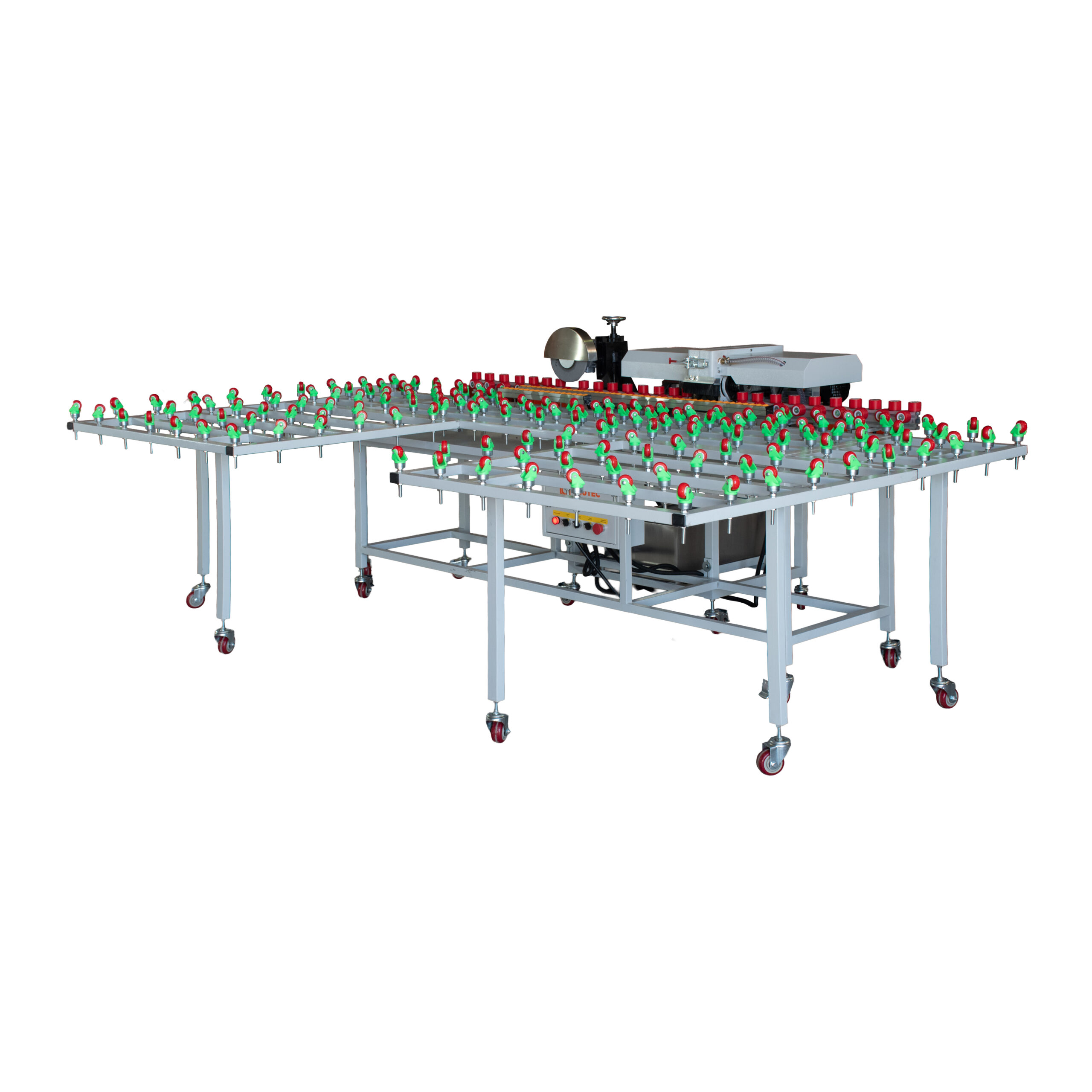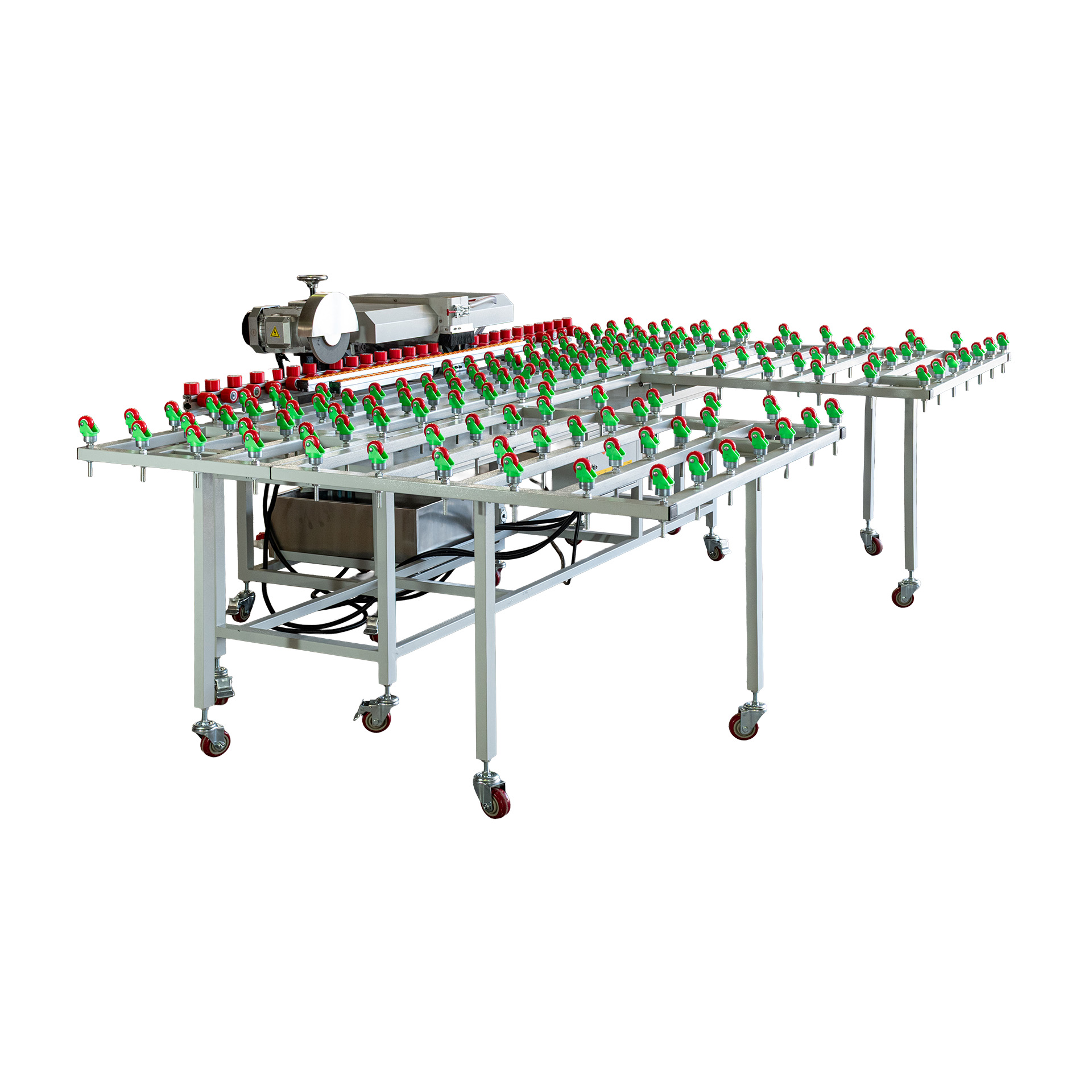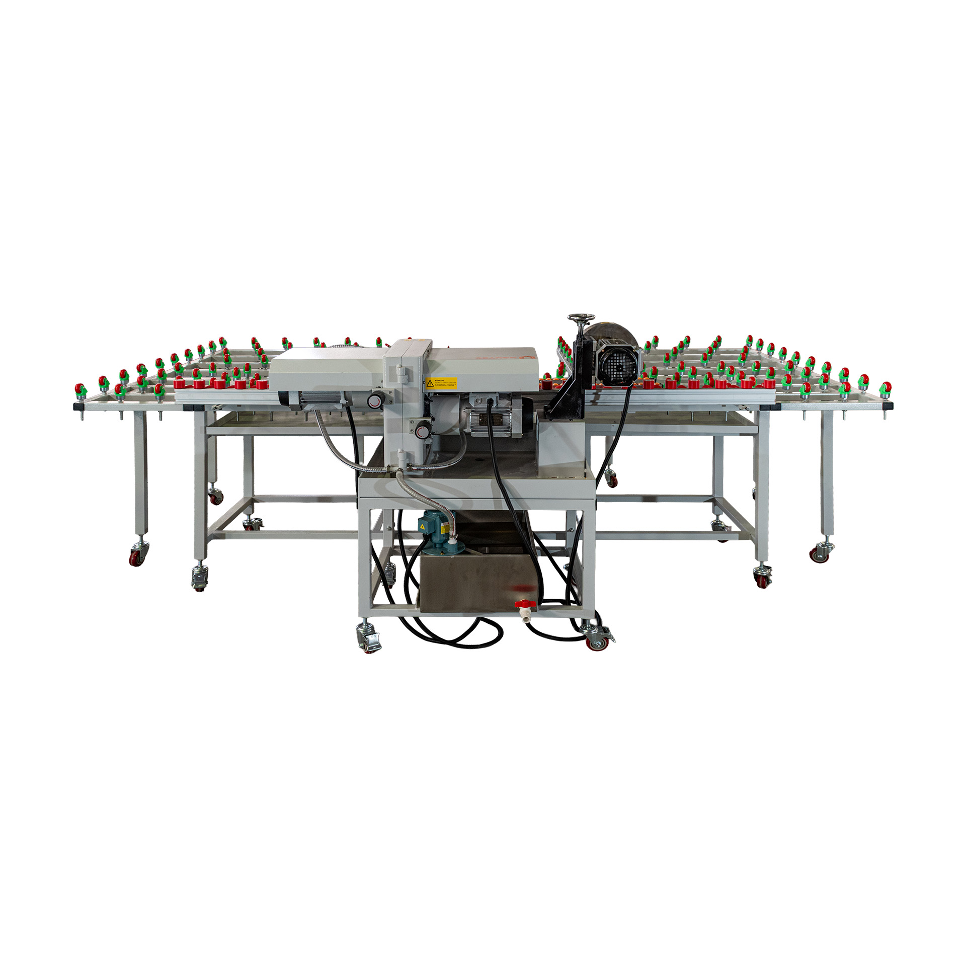 Esta lijadora es adecuada para pulir en húmedo bordes rectos de vidrios planos de diferentes tamaños y espesores de 3 a 12 mm. Equipada con 2 cabezales de muelas de resina diamantada: uno superior, y otro inferior. Además cuenta con una muela para remoción de la película Low-E. La profundidad de lijado puede ajustarse mediante manivelas individuales con el fin de lograr un pulido del borde según necesidad. Con su fácil operación, esta máquina se convierte en un equipo indispensable en el procesamiento de vidrio. Construida en acero inoxidable, con mesa auxiliar de caño estructural de acero y terminación con pintura poliuretánica.