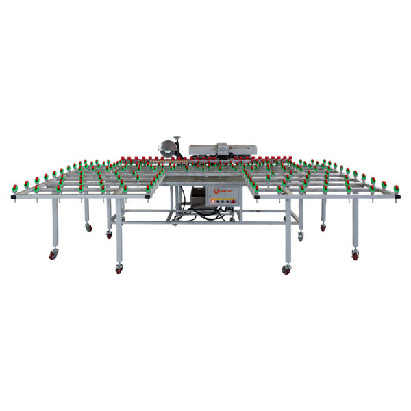 La mesa de armado RIAL, está diseñada y ensamblada en nuestra planta industrial, y se orienta a la fabricación del doble vidriado hermético (DVH). Cuenta con colchón de aire de accionamiento a pedal, ventosas de fijación y topes de escuadrado de accionamiento neumático.