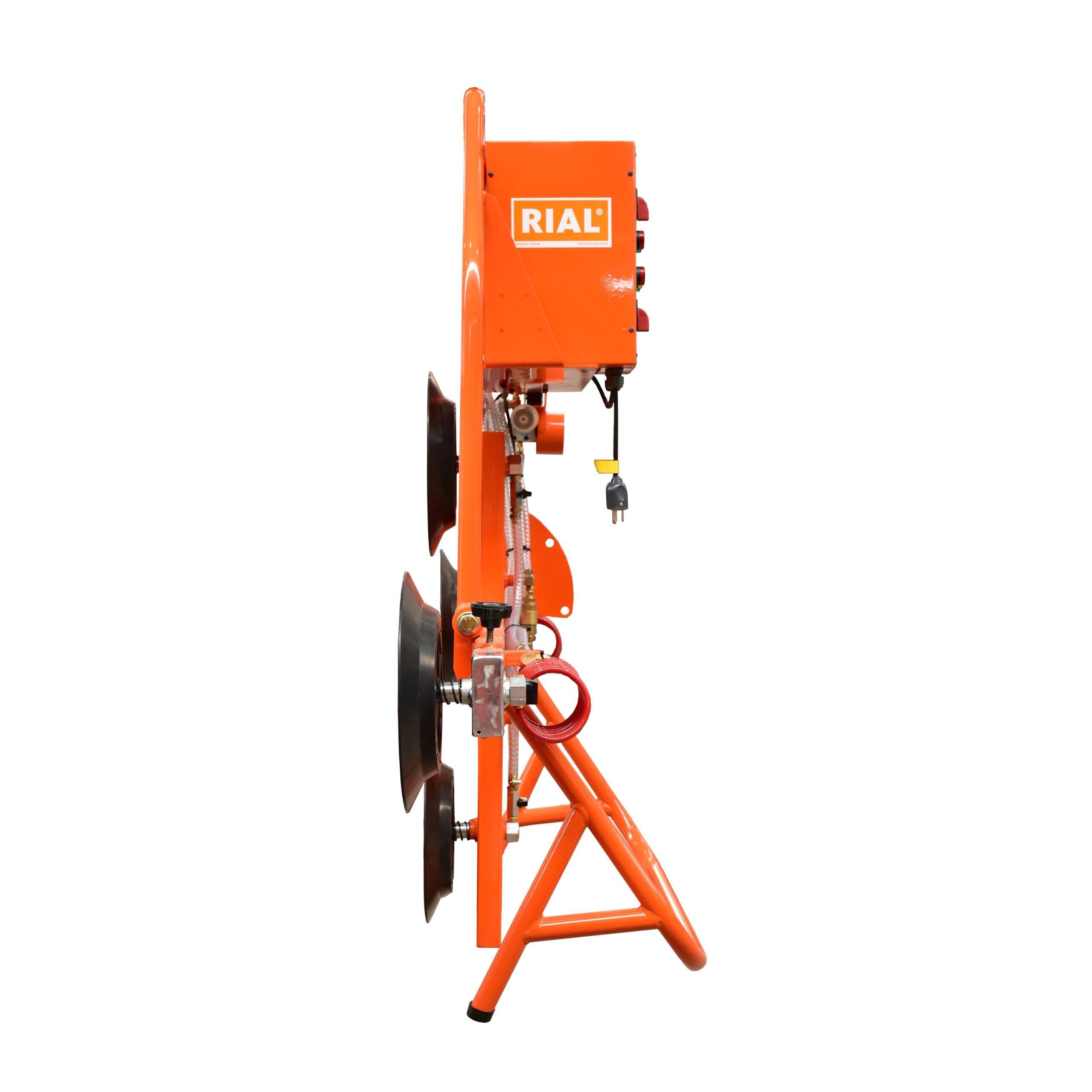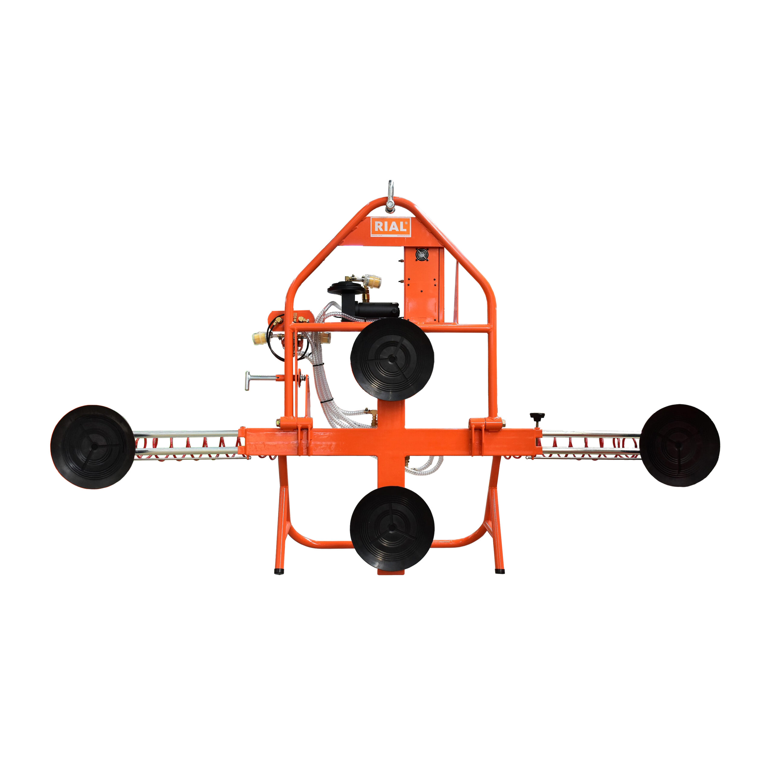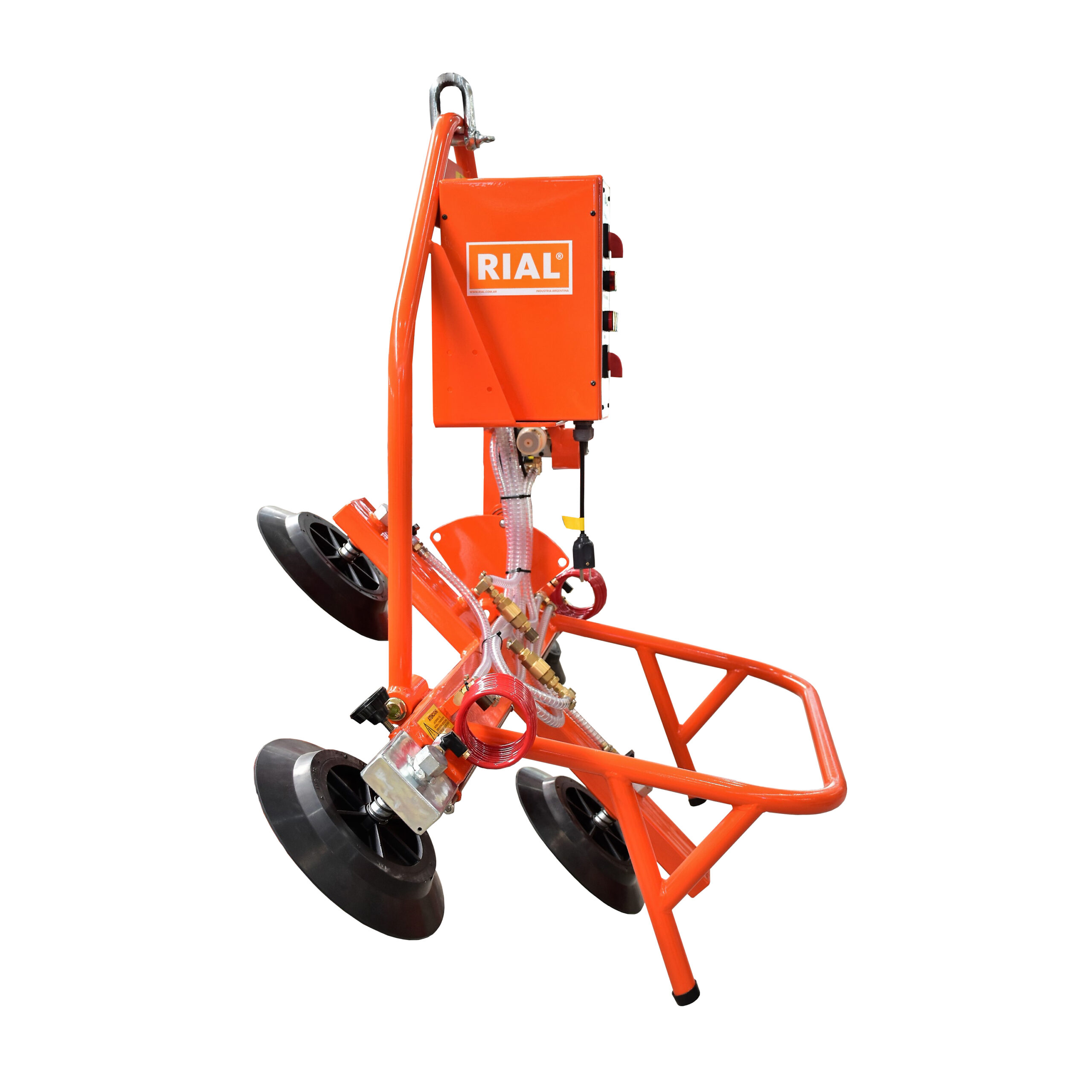 Las ventosas para grúa RIAL están diseñadas para el movimiento de materiales con superficies parejas, planas y no porosas como vidrio, plástico, metal, madera enchapada o mármol pulido, mediante diferentes sistemas de elevación como ser puente grúa, aparejo, polipasto, autoelevador, etc. Posee un sistema de vacío a batería para mantener la adhesión y brazos fácilmente extensibles. Su construcción en acero es de gran robustez y la terminación de alta calidad con pintura poliuretánica le confiere durabilidad y facilidad de limpieza.