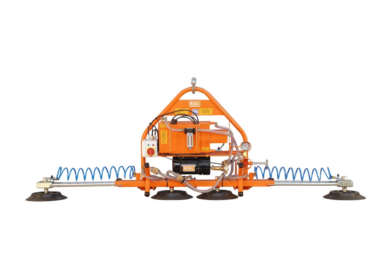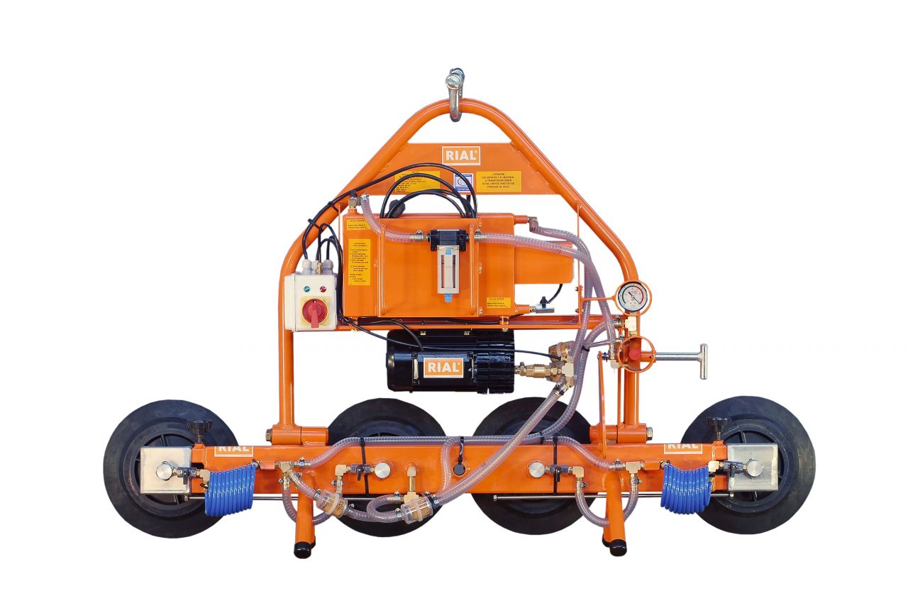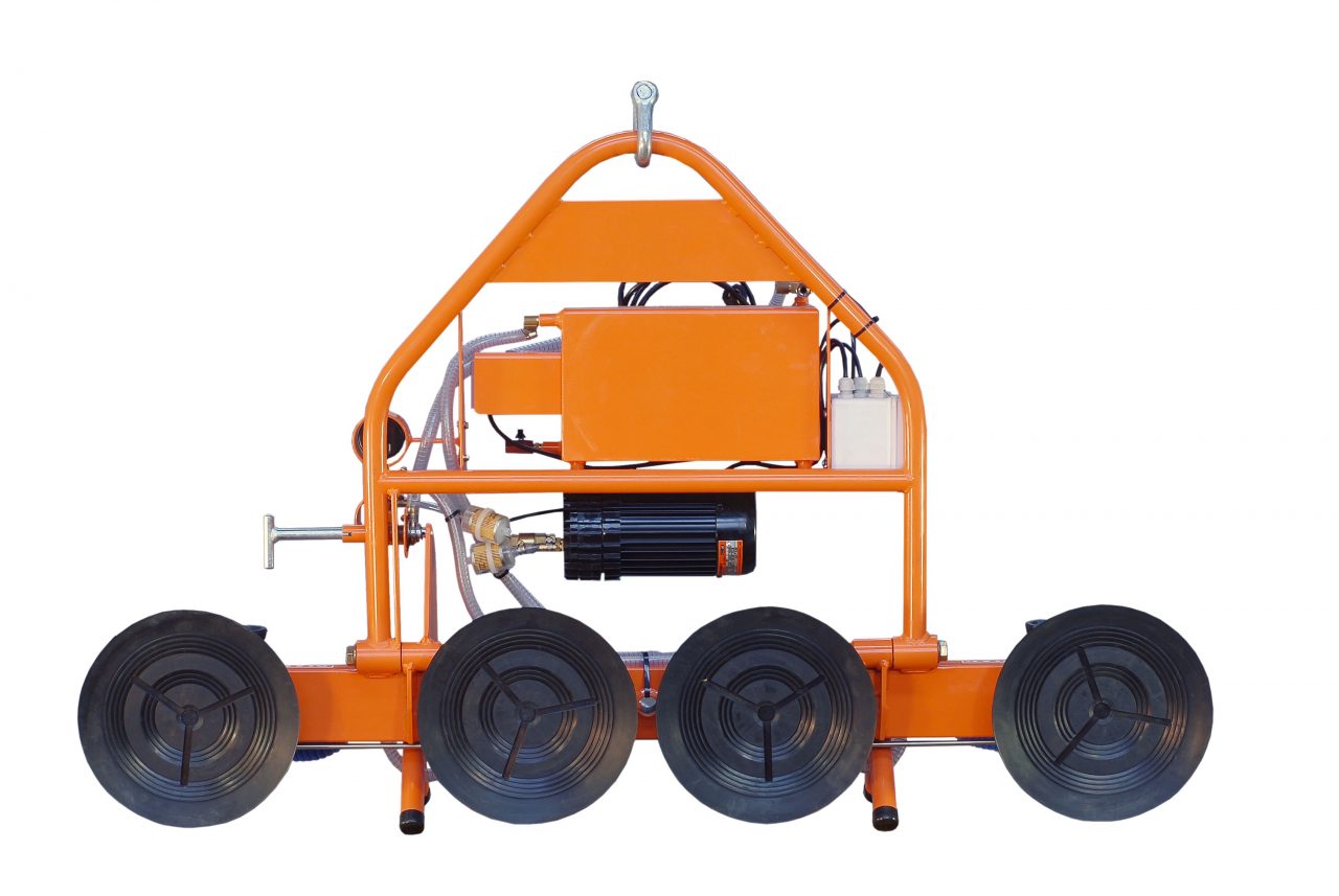 Ventosa para Grúa para movimiento de materiales con superficies parejas, planas y no porosas como vidrio, plástico, metal, madera enchapada o mármol pulido. La trampa de agua evita el ingreso de líquido al circuito de vacío y permite trabajar con superficies mojadas.